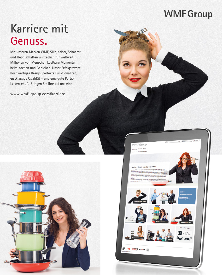 Das Ergebnis: ein zeitgemäßer und frischer Auftritt, der Produkte und Mitarbeiter der WMF Group in den Mittelpunkt stellt und zu einer „Karriere mit Genuss.“ einlädt.